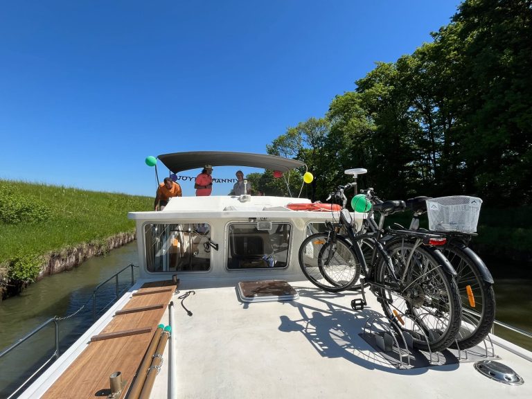 Découvrez le charme du tourisme fluvial avec notre hébergement spacieux qui comprend deux chambres doubles et une chambre avec lits superposés, idéal pour les familles ou les groupes d'amis. Profitez d'une cuisine entièrement équipée, incluant un four à gaz, un micro-ondes et un réfrigérateur, pour préparer de délicieux repas après une journée d'aventures sur l'eau. Détendez-vous dans notre séjour intérieur convivial ou sur la terrasse extérieure ombragée, parfaite pour savourer un verre tout en admirant la vue sur le canal.